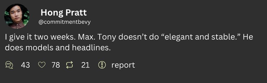 Flutter (Twitter) Reactions to The Apogee Awards by ingloriousgigi | Apr 18, 2026 | Fake Social Media, Stories | 0 comments Submit a Comment Cancel replyYou must be logged in to post a comment.